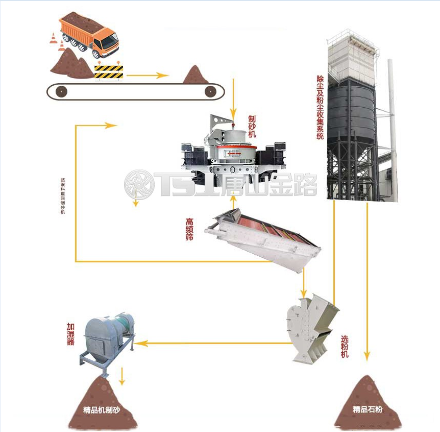 綠色環(huán)保:干法制砂,設(shè)備在負壓狀態(tài)下運行,粉塵無外溢,滿足環(huán)保要求。